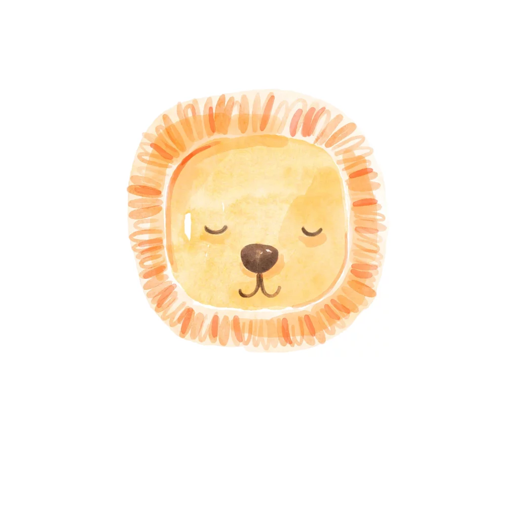 Schattig geboortekaartje met een waterverf illustratie van een leeuw.