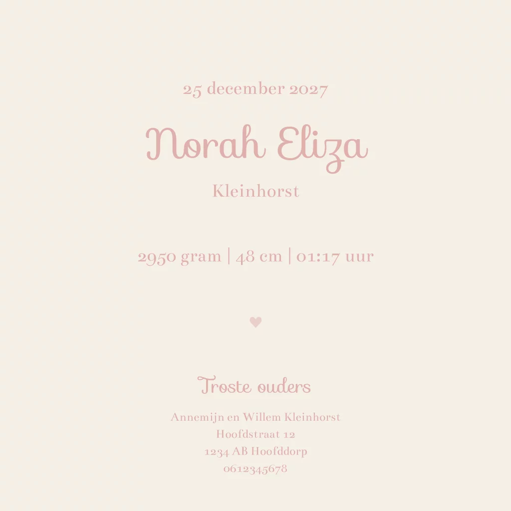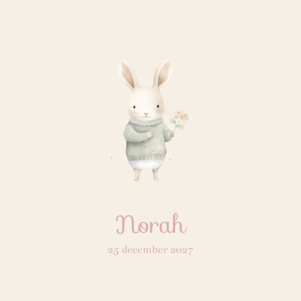 Dit schattige geboortekaartje met een konijntje en bloem is perfect voor de aankondiging van de geboorte van jullie dochtertje.