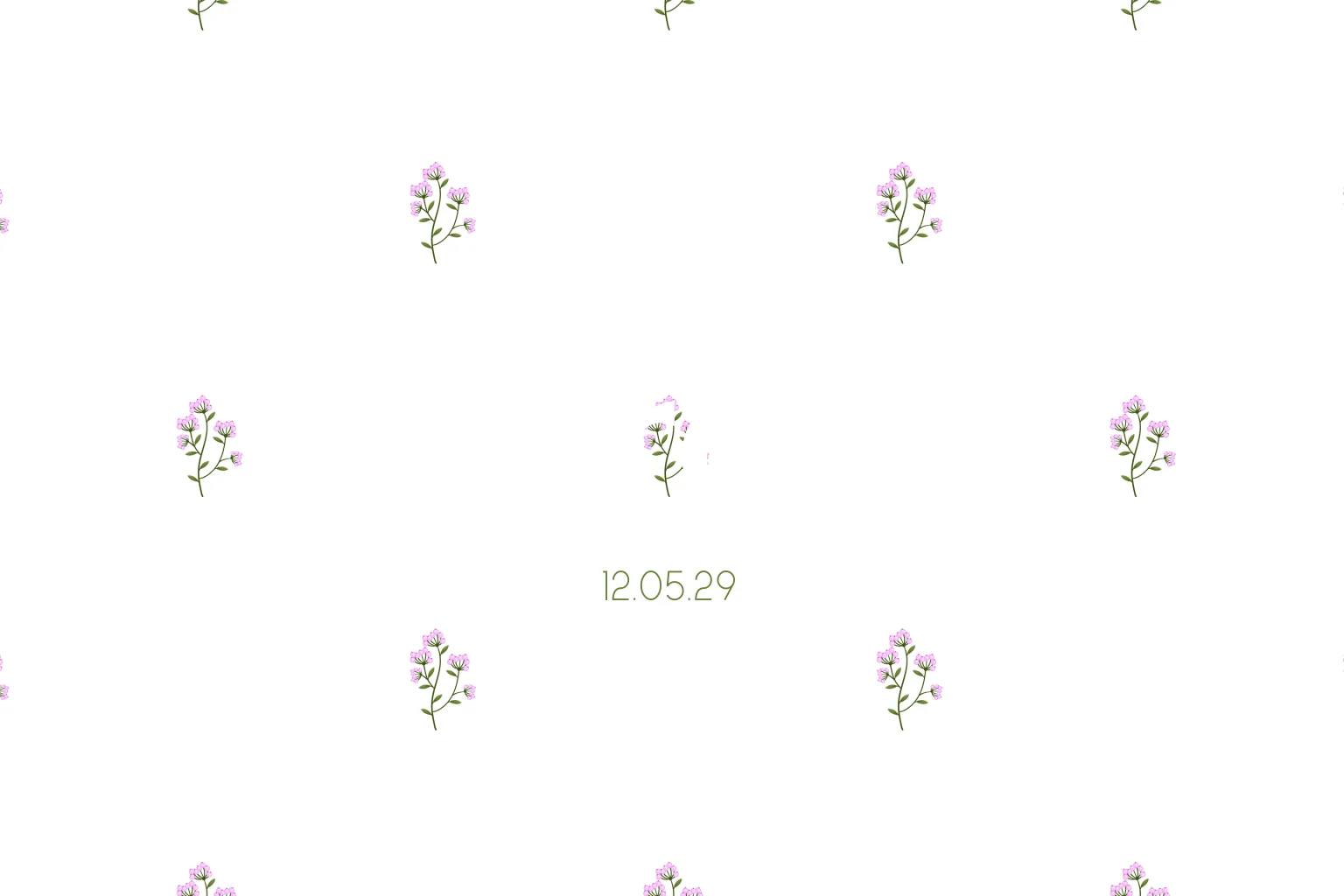 Geboortekaartje met een patroon van kleine madeliefjes op een zandkleurige achtergrond. Het ontwerp heeft een rustige en minimalistische uitstraling met zachte tinten en subtiele details. De naam is uitgevoerd in een modern lettertype met foliedruk-effect.