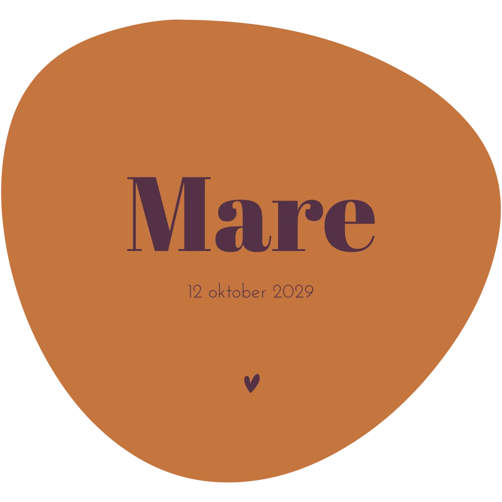Warm geboortekaartje in pebble vorm met terracotta achtergrond en donkerbruine letters. De minimalistische stijl maakt dit kaartje een echte blikvanger voor een meisje. Personaliseer eenvoudig naam, kleur en lettertype in de online editor en maak er een ontwerp van dat perfect bij jullie past.