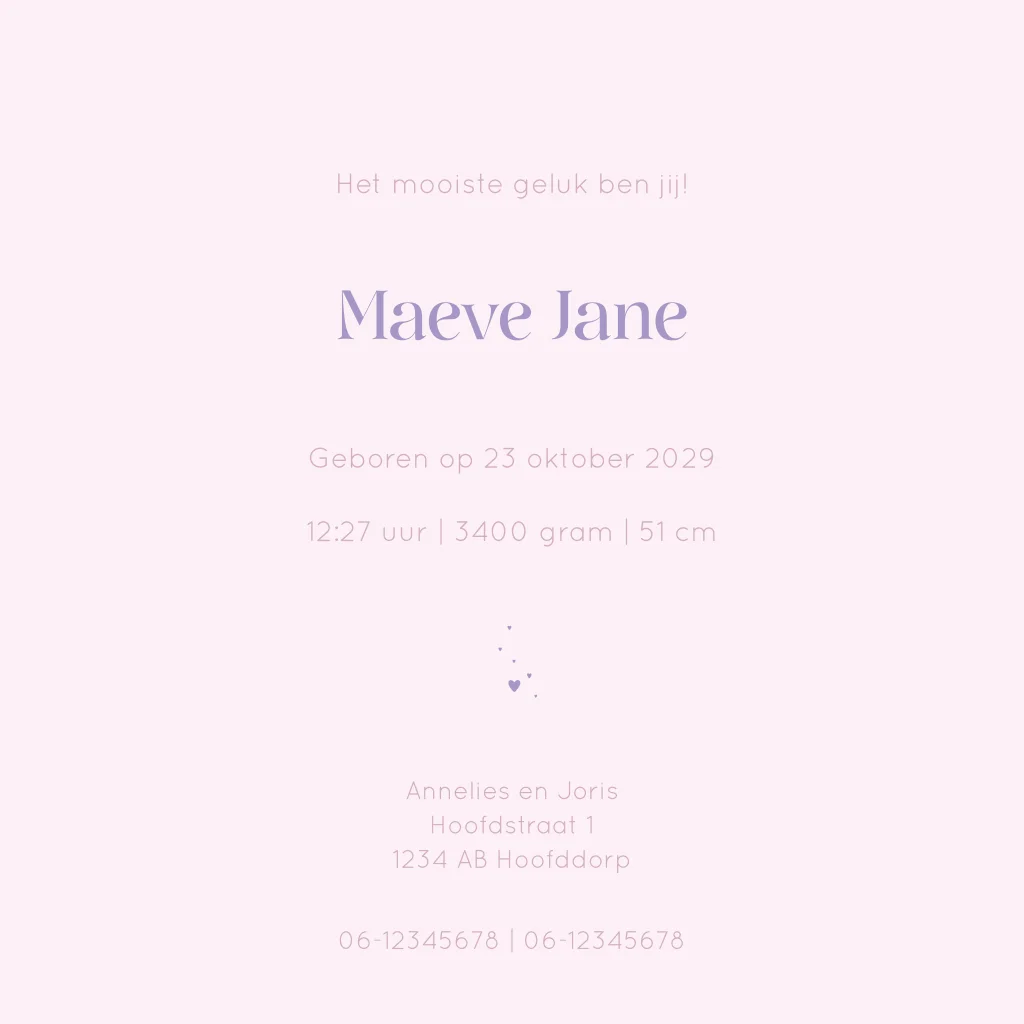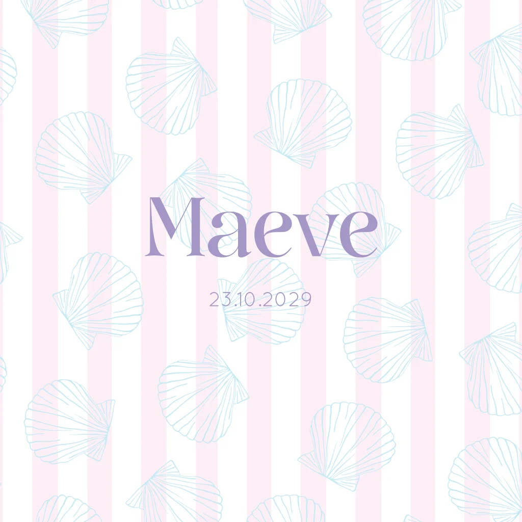 Een lief geboortekaartje met subtiele roze strepen en handgetekende schelpjes. De zachte kleuren en speelse details maken dit ontwerp perfect voor een zomerse geboorte. Personaliseer eenvoudig de naam, datum en kleuren in de editor.