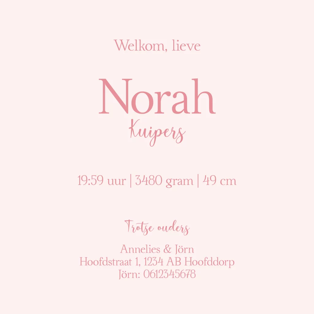 Geboortekaartje Roze strik