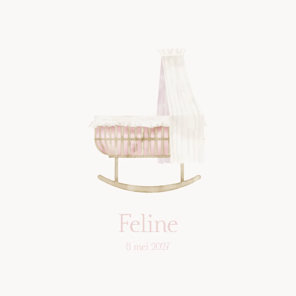 Geboortekaartje met een illustratie van een wiegje.