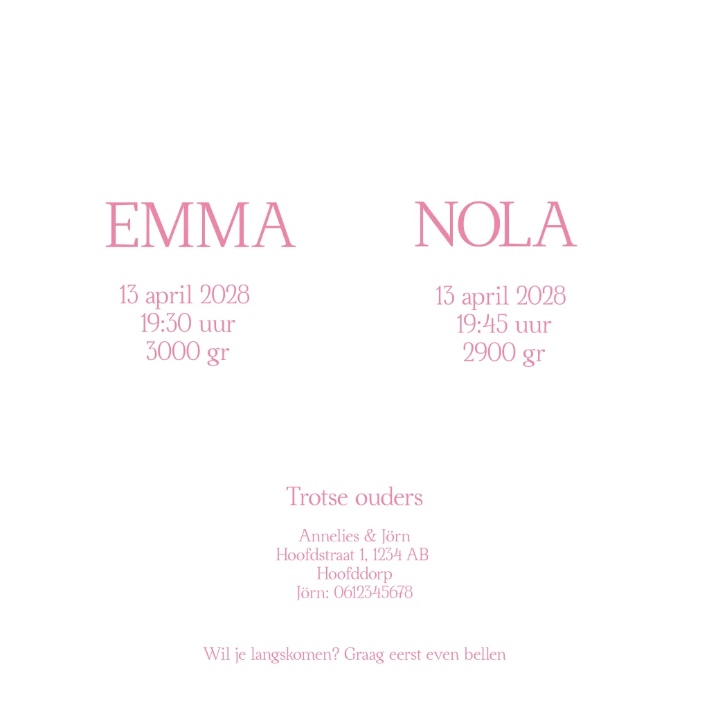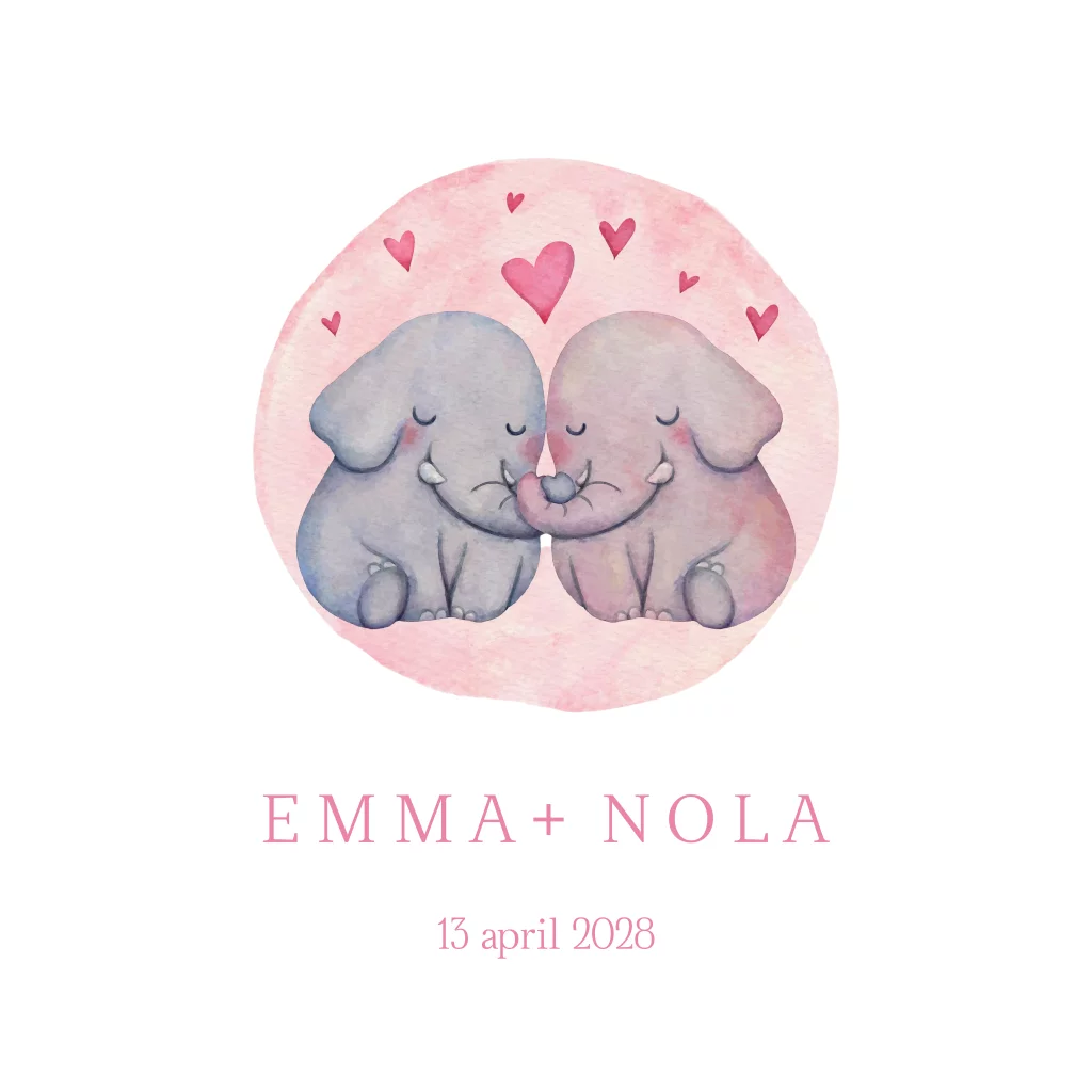 Geboortekaartje Tweeling olifanten