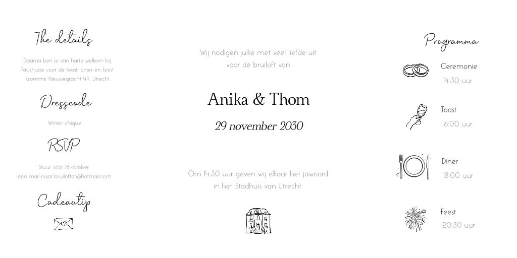 Trouwkaart tweeluik minimalistisch