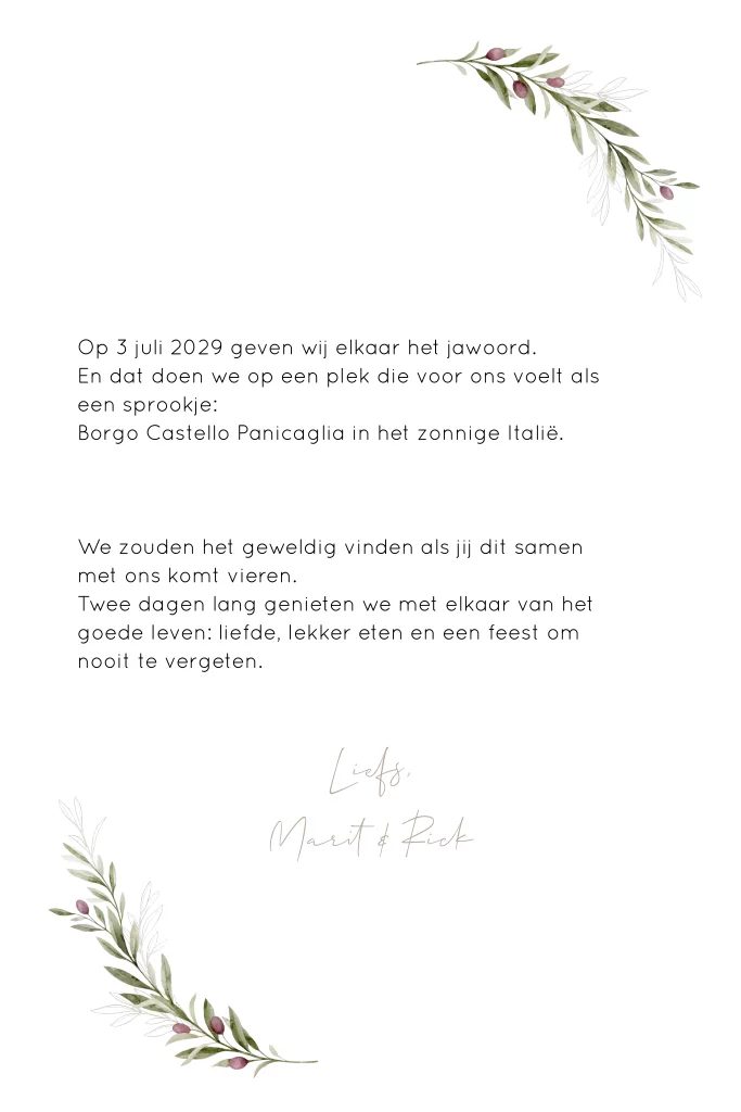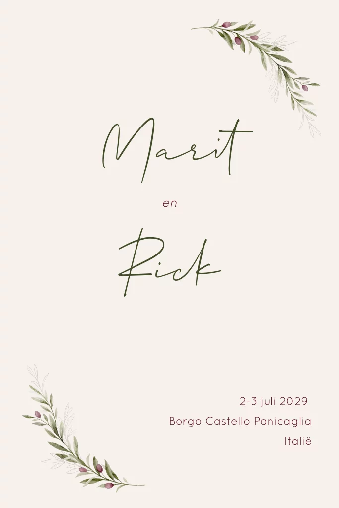 Trouwkaart met illustratie olijftak